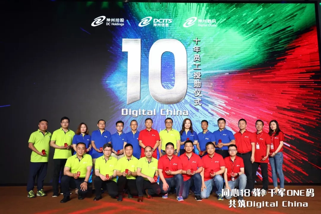 坚定战略选择,奋斗创造价值!Digital China大家庭是一支具有向心力、凝聚力、富有战斗力的队伍。在发展的长河中,无数人默默奉献,推动着Digital China的发展,见证着它的成长。今年的生日庆典依然延续传统,为入职满10年的员工颁发荣誉勋章。