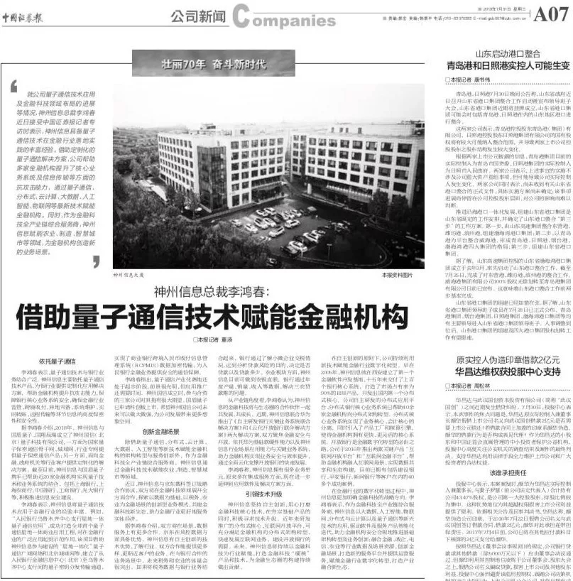 中国证券报 | 神州信息总裁李鸿春:借助量子通信技术赋能金融机构