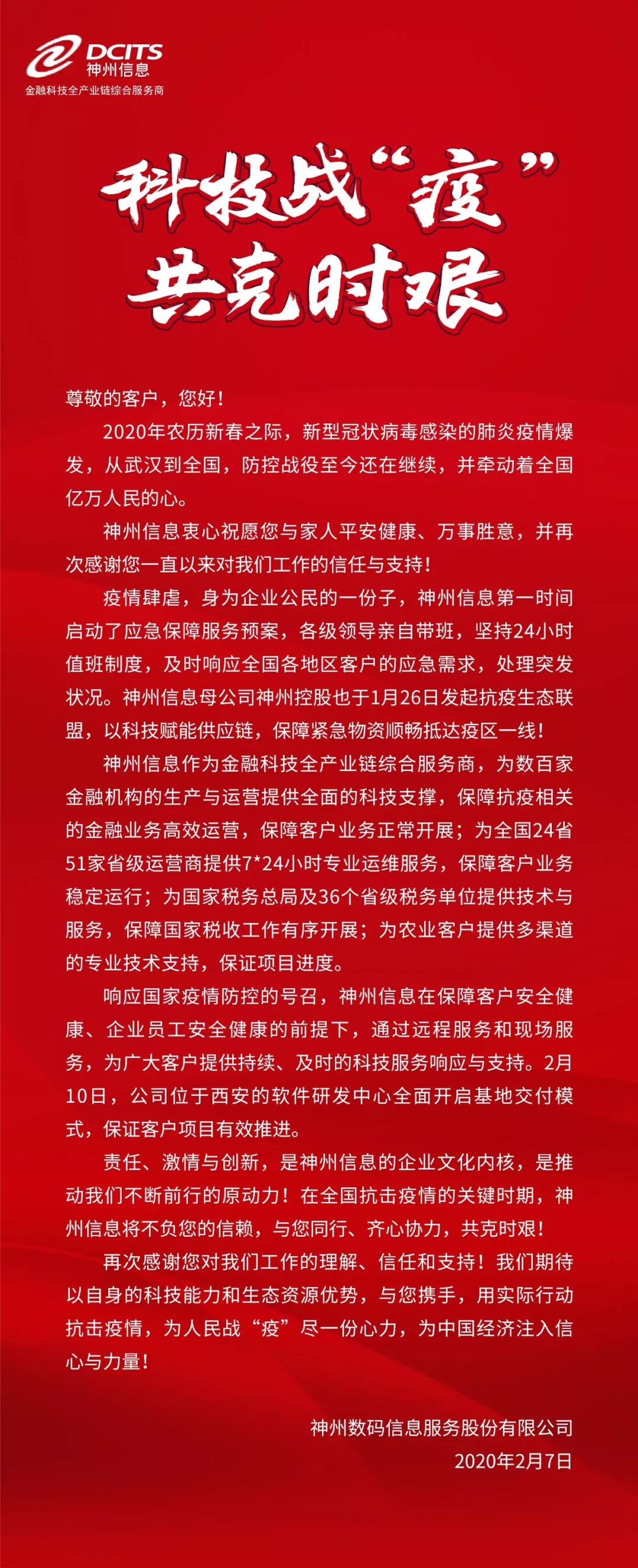 科技战“疫”,共克时艰!——神州信息致客户的一封信